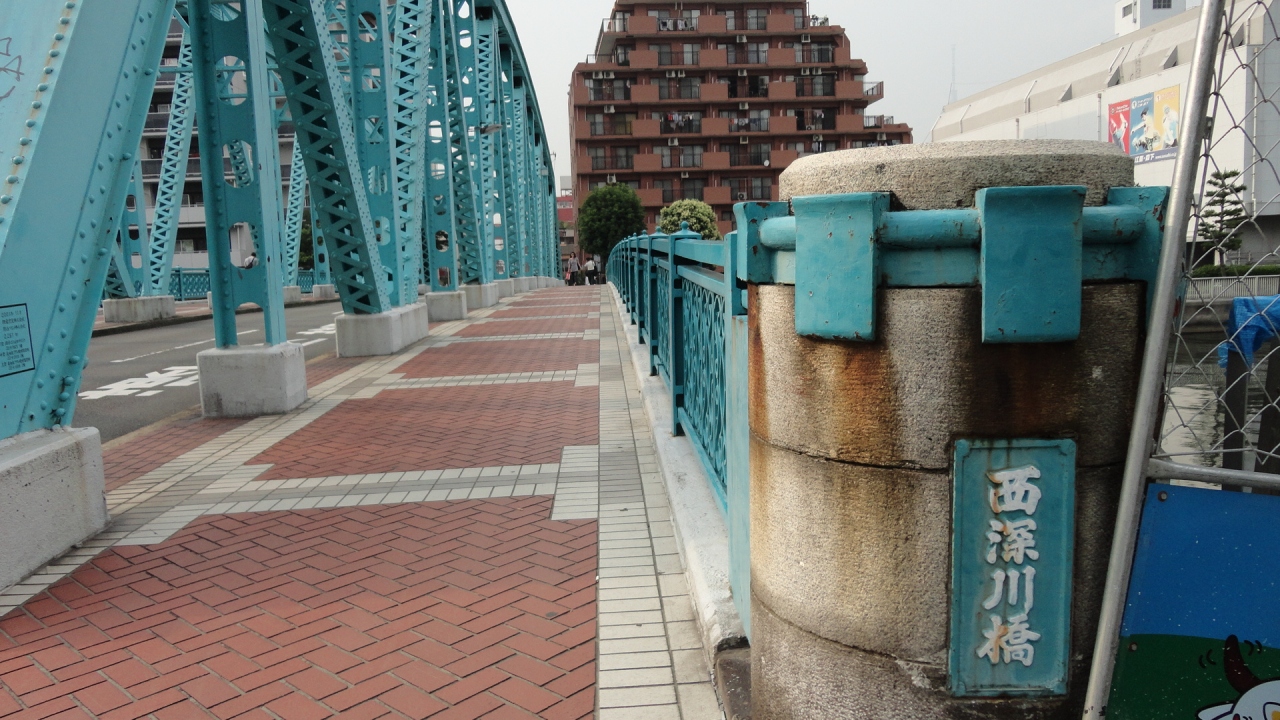 清澄通りと並行して一本東側を走る通りで、西深川橋という名前がついています。