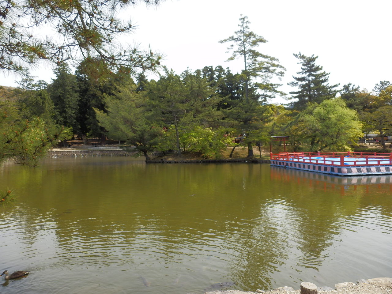 東大寺の南門から大仏殿へ行く途中、中門の手前にある池です。池の真ん中には松などが植えられた島もありました。鏡池の手前から大仏殿方向を眺めると、中門と大仏殿がちょうど良いアングルに収まります。ライトアップがある日には鏡池越しに拝むのが美しいようです。