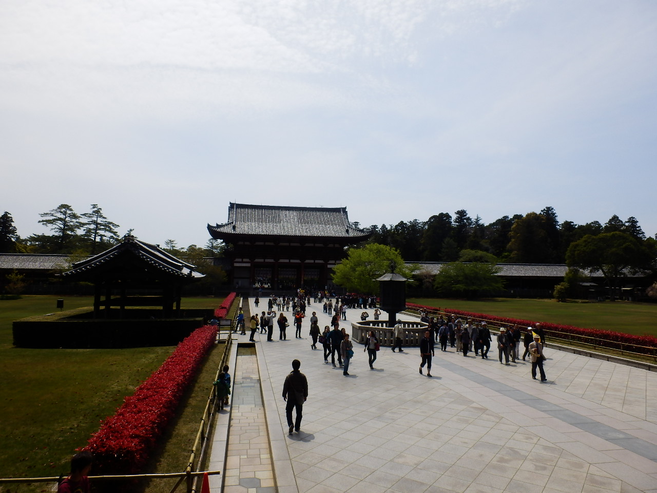 東大寺と一口に言っても、境内はとても広いです。奈良公園の北側半分ほどが東大寺の境内です。南大門からまっすぐ進むと、大仏様がいらっしゃる大仏殿。大仏殿へは行かず、中門から右に折れると、鐘楼などがある丘があり、さらに進むと、法華堂(三月堂)、二月堂です。じっくり見ると、かなり時間がかかります。