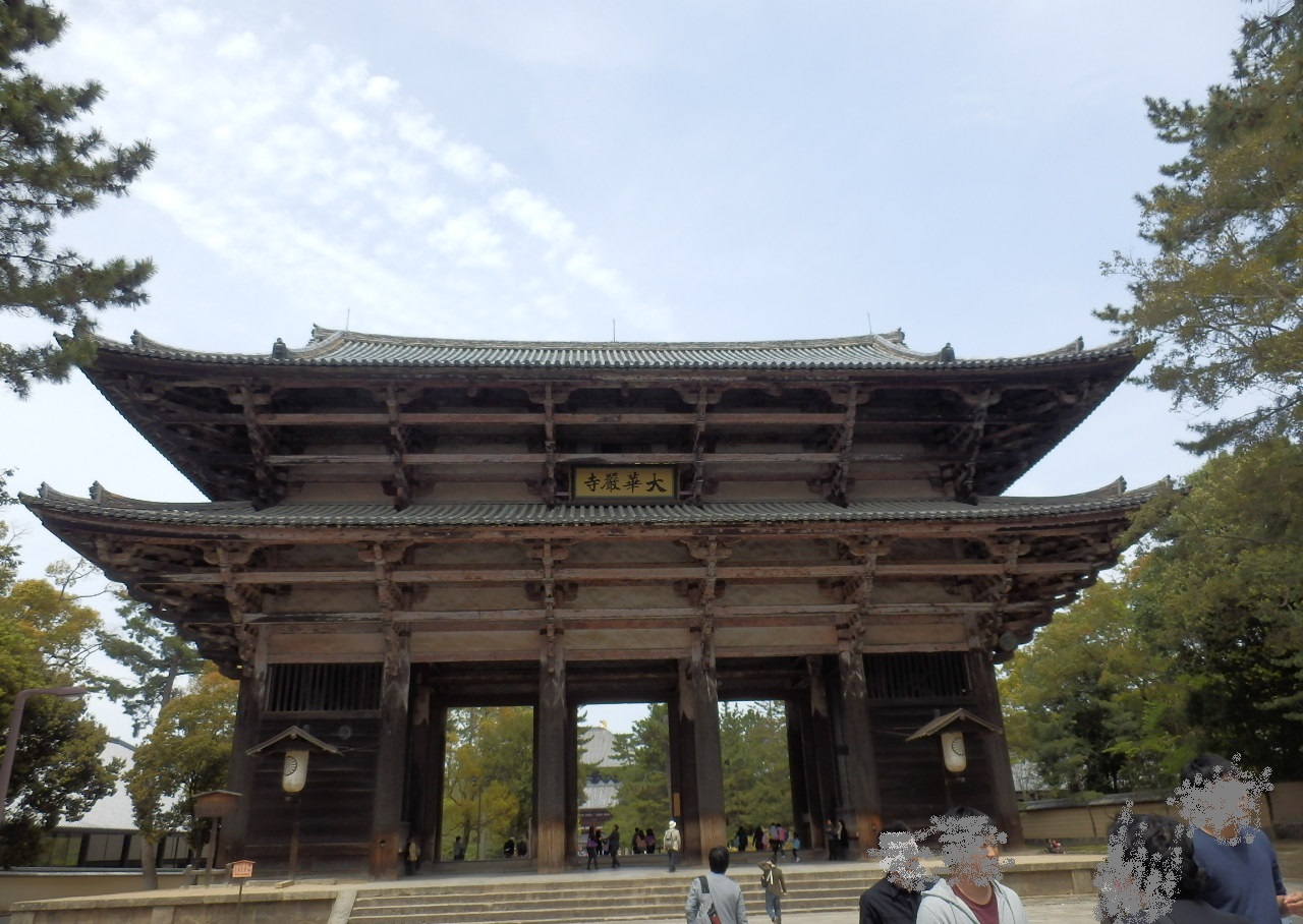 東大寺の入口に建つ南大門は鎌倉時代に再建された木造の建物です。大仏殿は美しい建物ですが、南大門は年季が感じられる渋い外観でした。門の両側には木造の仁王像が収められていて、見どころも多かったです。南大門の周りには鹿も多く、鹿せんべいを売るお店もあるため、立ち止まっている人も多くて賑やかでした。