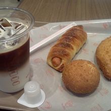 お店が細長い感じで、行き来ができにくく、あまり悩んでパンを選ぶというよりは、目についたものをさっととって飲み物オーダーがよさそうです。