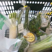 新鮮野菜はもちろん、近くのお菓子屋さんの和菓子や
