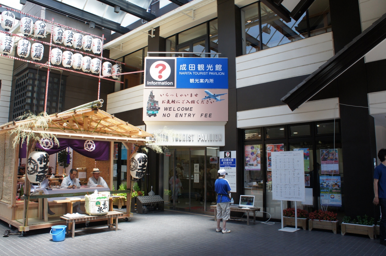 成田観光館は、表参道沿い。新勝寺に近くなってきて、表参道は下り坂になるのですが、その下り坂の中ほどです。奥に、展示スペースがあって、祇園祭の山車などが展示されています。ただ、この日は、祇園祭の期間中なので山車は出払っていました。中では、祇園祭のビデオもやっていて、見所を確認したりすることができました。事前の情報を仕入れるにはここが最適です。