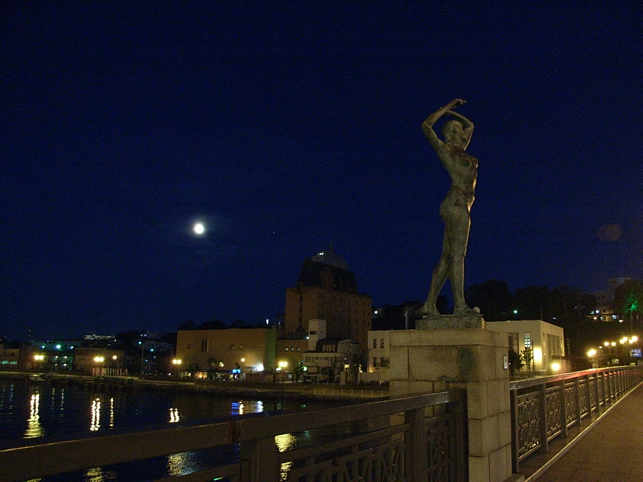”昼から~(♪) 夜のあいだに~(♪)” まさにその瞬間です。 なんともいえない旅情に誘われました。 その後、すぐに日没となり、今度は、幣舞橋から見事な満月がでてきました。 そこには、 ”満月に浮かぶ美女” が遊んでいました。 大変にラッキーな釧路の旅路でした。