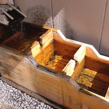 松本薬業会館 内」にある「くすりの神様」が祭られている「薬祖神社」にあります。薬業会館内の湧き水は渾々と湧出し古老の伝えによると他の井戸が枯渇しても決して枯れなかったと言い伝えられています 薬祖神社の御遷座を機に中村神官により 日の出の泉「薬祖水」と命名されたほどの名水です。
