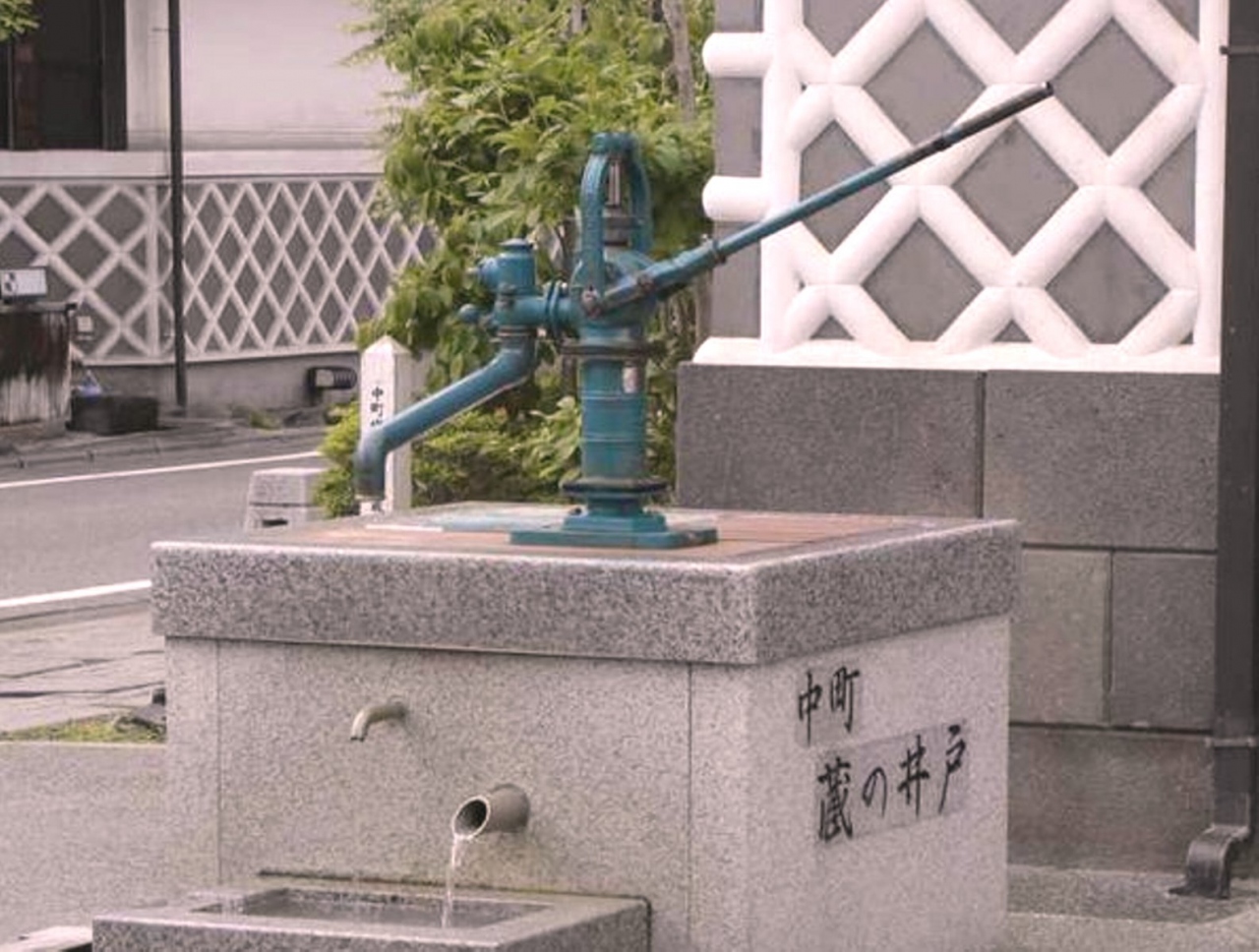 中町蔵の井戸は、なんと手動ポンプでした。これは子供が勉強するにもっこいです。近年は手動ポンプなんて触ることがありませんので・・おっちら・・力を込めて上下に動かせば・・つめいた地下からの水がドバーンって出てきます。子供には良い体験に成ります。