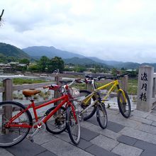 豊かな流れの桂川沿いを車に怯えずマイナスイオンたっぷり浴びて