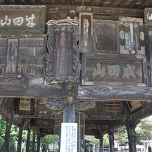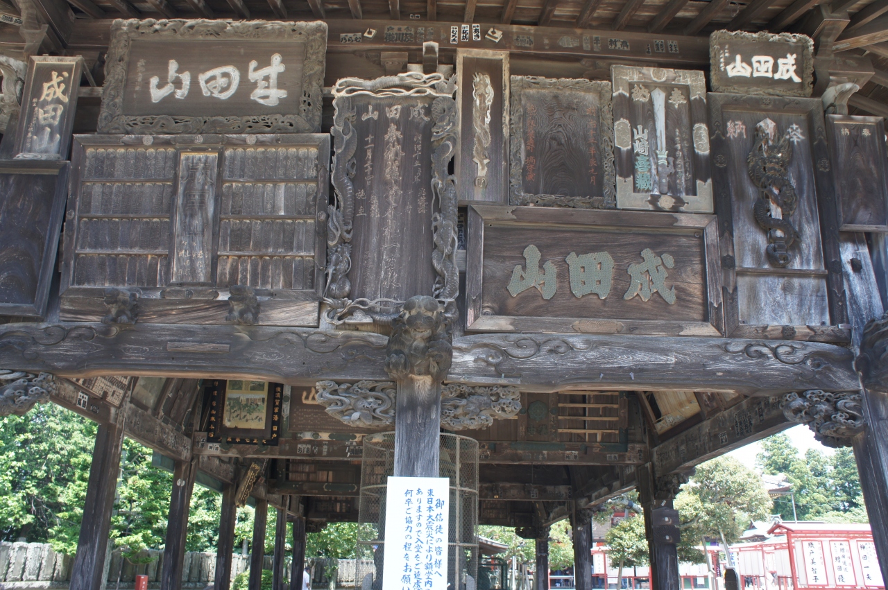 成田山新勝寺額堂は、江戸後期、1861年の建立。全面吹き放しの構造で、奉納された額や絵馬をかける建物です。東北地方太平洋沖地震以後は、絵馬が余震で落下する危険もあるということから立ち入りは禁止。遠目で見るしかありません。