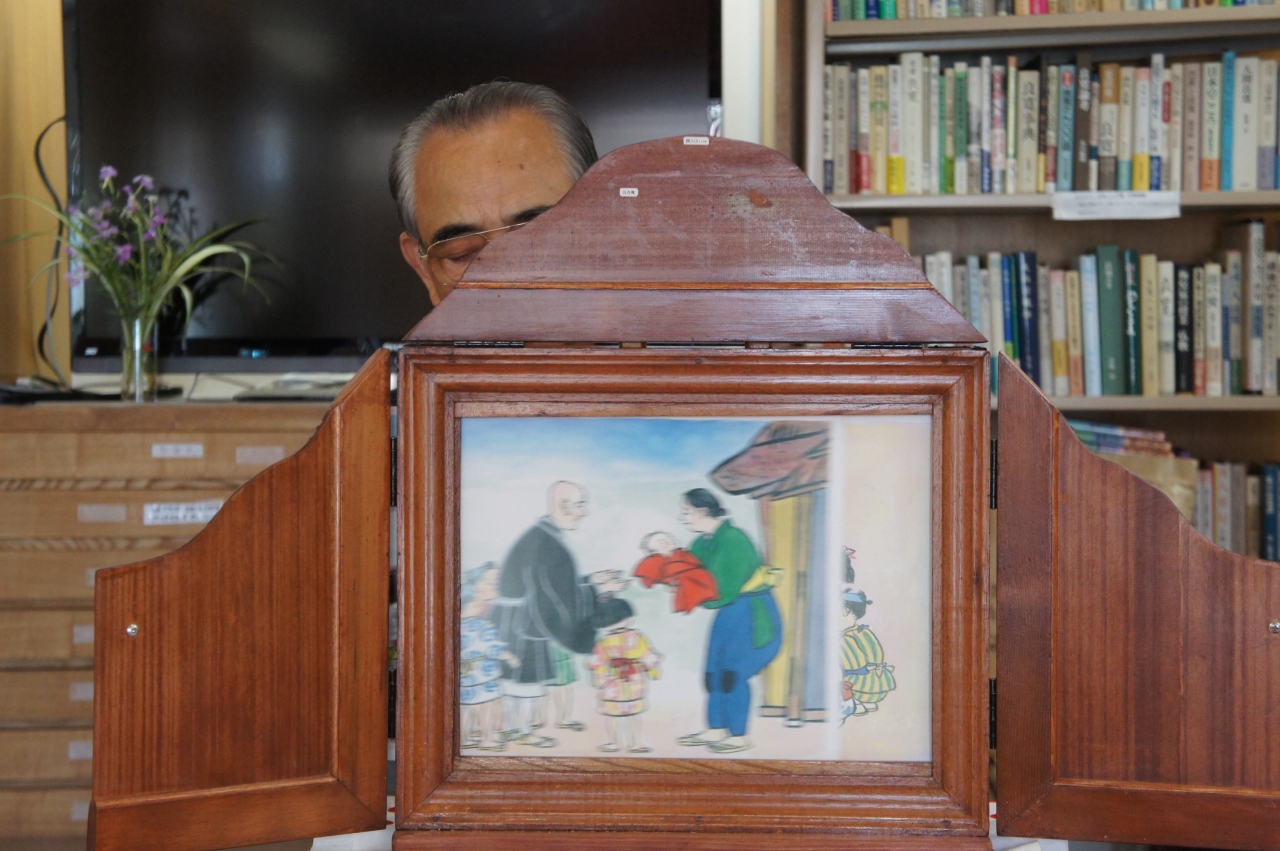 この施設は、街のボランティアが運営している施設なんでしょうか、近所の人が憩う集会所のような雰囲気もあります。入ると、「どうぞ、どうぞ」とお茶とお菓子をいただきまして、ここの名物、良寛さんの紙芝居を見せていただきました。欲得を捨て、無心に子供たちと遊び戯れる良寛さんに思いを馳せて、とても心が癒されました。会長さんの語り口最高です。