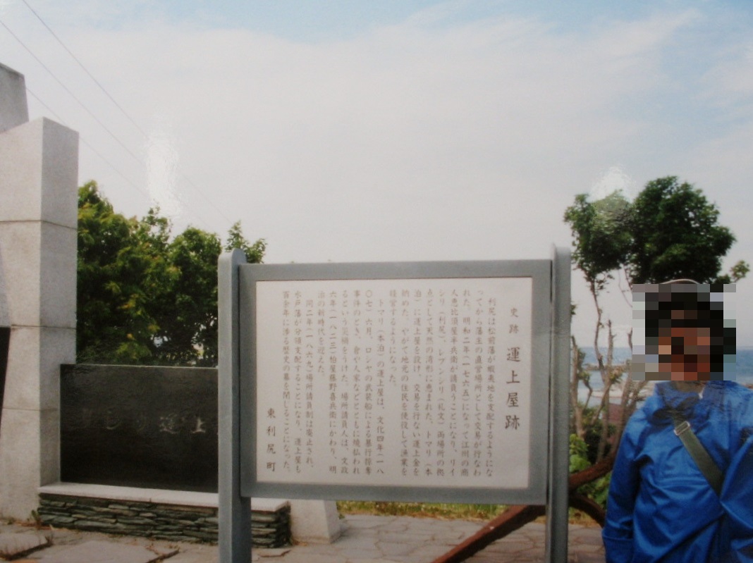 「本泊運上屋跡」は、鴛泊港から西に車で10分足らずの、本泊漁港の近くにあります。江戸時代、蝦夷地を管轄していたのは松前藩ですが、家臣への俸禄として米が支給出来ない(当時の北海道は米は出来ない)ことから、その代わりとして家臣に決められた区域でアイヌの人と交易することを認め、その収入を俸禄とする制度をとりました。交易としての主なものはニシン、サケ、昆布 アワビなどの海産物です。その交易を家臣に変わって請負った人が経営のために場所ごとに作ったのが「運上屋」です。運上屋はその後、公文書を取り扱うなど松前藩の出先機関のような仕事もするようになりました。現在、建物などは残っておらず、当時の復元石段や“りしり運上屋跡の碑”、説明板などがあるだけです。