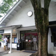 奥にはトイレもあり、手前の喫茶では軽食やソフトクリームなどが売っています、隣には観光案内所もあり、広場にはベンチもあります。
