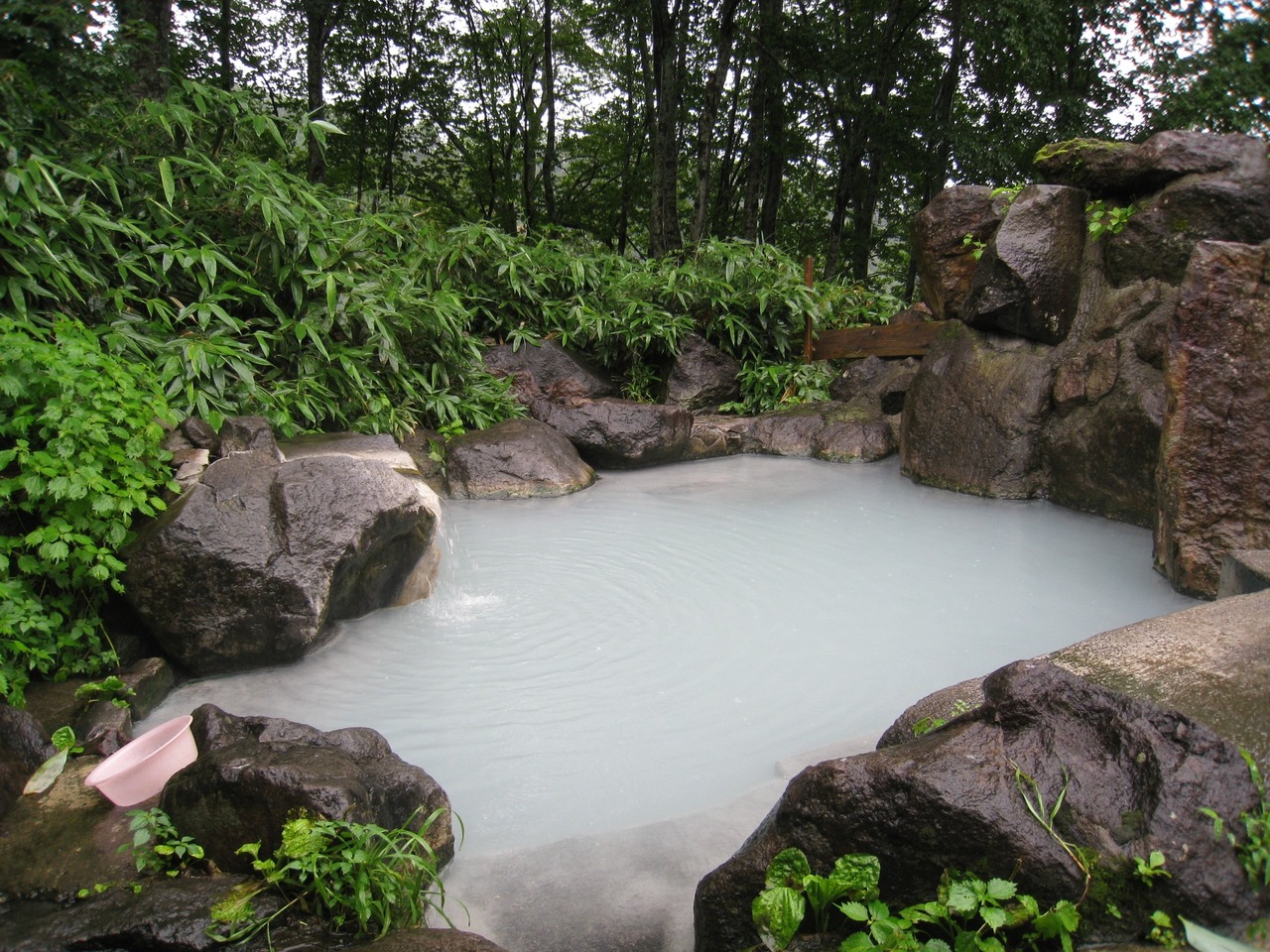 - 乳白色の硫黄泉。黒い粒子は何だったのだろう?