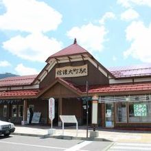 信濃大町駅は、長野側アルペンルートの玄関口です。かわいらしい駅舎ですが、お土産を買えそうな店舗は、駅舎内に1つ、駅舎を出て右手に1つの2店舗のみ。待合スペースもそんなに大きくはないので、繁忙期は椅子取りゲームになりそう。