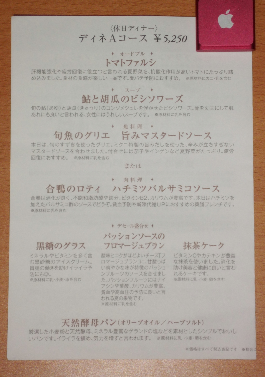 コースは5250円、7350円、9240円がありました。(休日用)