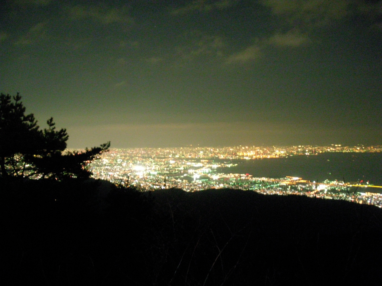 六甲山方面から夜光り輝く船々の明かりが神戸の夜景を盛り上げていました。