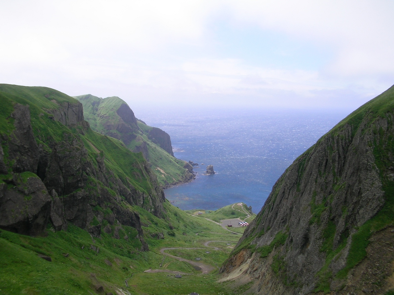 香深港から道道765号線を10分ほど走って、桃岩トンネルの200mほど手前右のわき道を少し入ると桃岩展望台の駐車場があります。そこから徒歩数分で桃岩山展望台に行くことが出来ます。巨大な桃の形をした“桃岩”と呼ばれる岩が目の前にそびえ、眼下には礼文島の西海岸と猫岩が見えます。周辺は遊歩道が整備されていて、たくさんの高山植物を見ることができました。