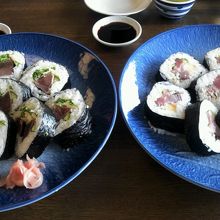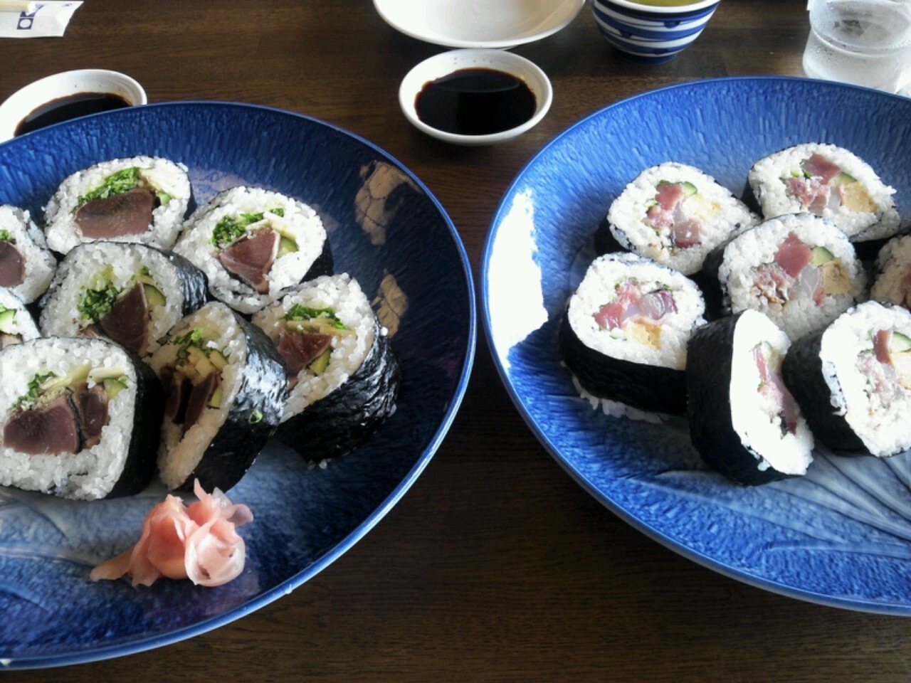 カツオの太巻きと海鮮巻き(→名前を忘れてしまいました)を3人でシェアして