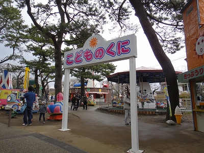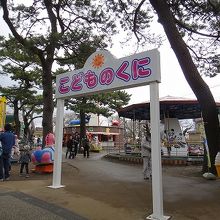 広々とした広場の奥には小動物園と、ちびっこ対象の遊園地があります。