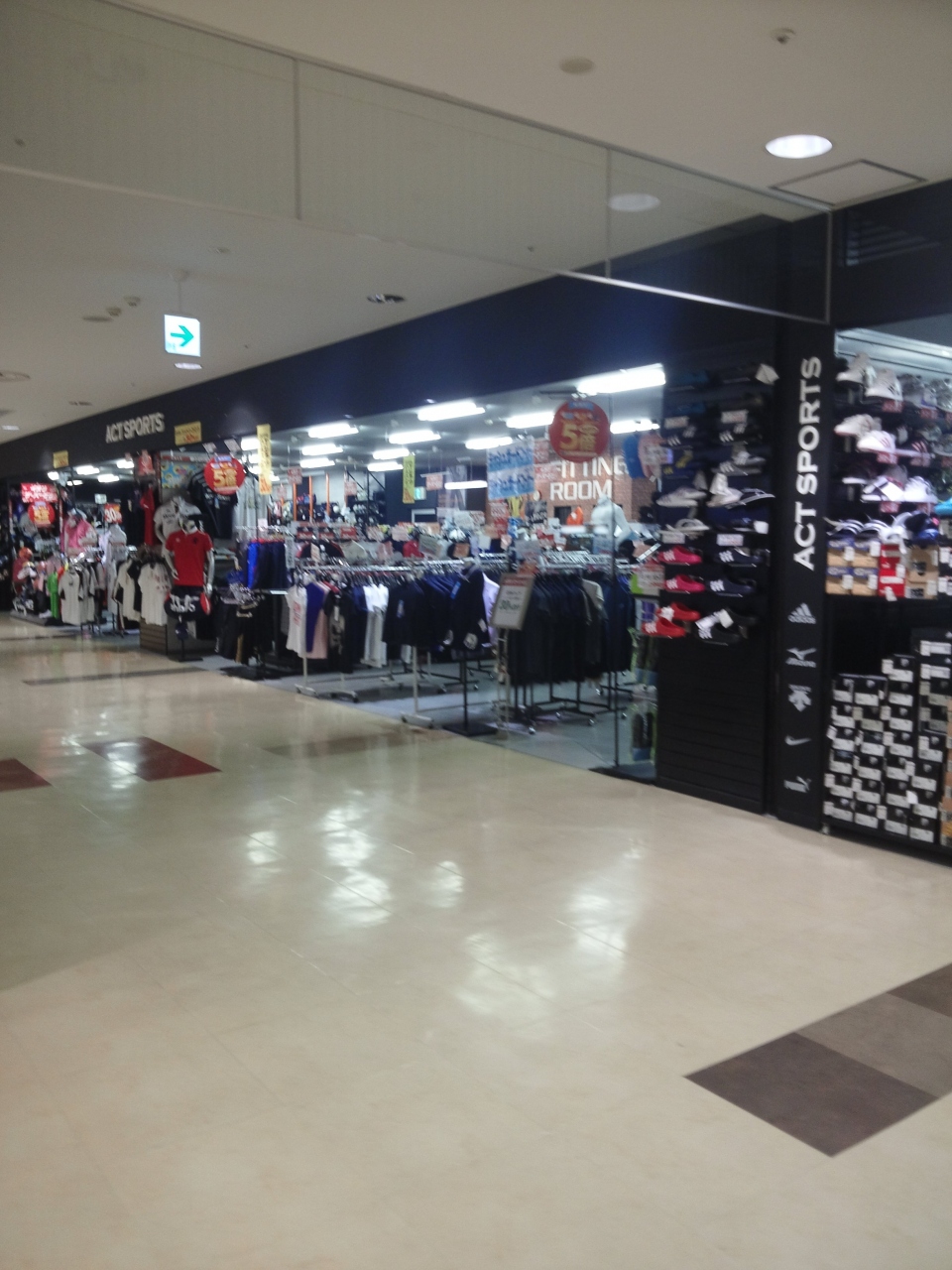 スポーツ用品も置いてあるが、スポーツウェア、スポーツシューズが主体のショップて感じに見えます。特にスポーツウェアやスポーツ適した服が沢山置いてありました。スポーツシューズが沢山置いてあるのがいい点です。