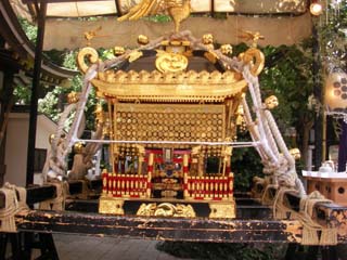 長壽院の木造阿弥陀如来立像を参拝した後は、近くの鳥越神社に向かうと、鳥越祭の千貫神輿が境内に出されています。各町会で交代で担ぐのは夜祭ですが、昼間みると煌びやかな飾りが圧巻でした。この日は各町内の御神輿が練り歩いています。