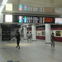 1番線2番線で行き先が「品川・新橋・日本橋・成田空港・京急蒲田・横浜方面」いずれの電車も発車します。