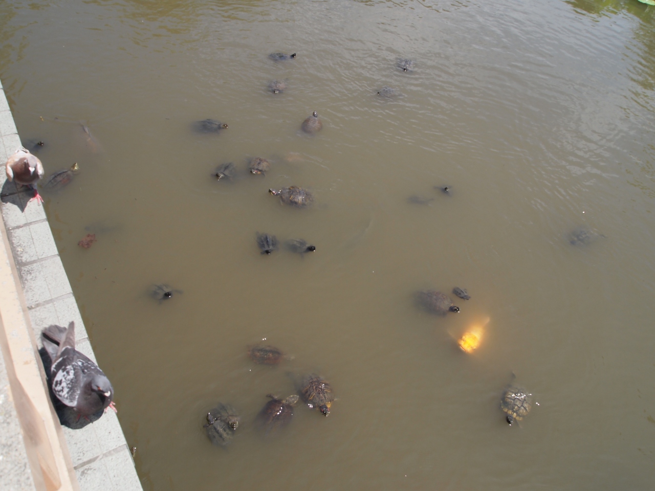 池には亀と鯉およびガチョウがたくさんいて、見ていて楽しかったです。