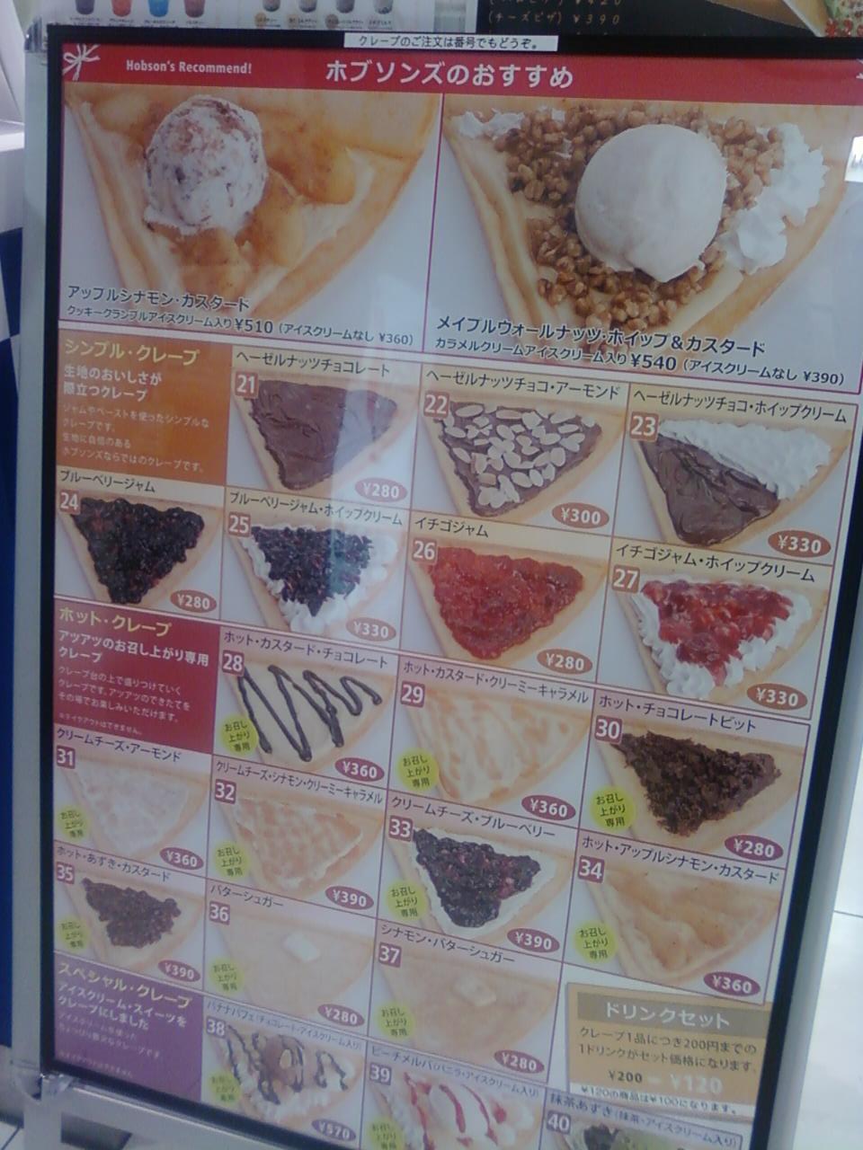 ここのホブソンズさんはJR武蔵境駅の南口の目の前にある、イトーヨーカ堂さん西館の地下、フードコートの中にあります。ホブソンズさんは、あまり他では見かけませんが、アイスクリームやクレープ、フロートなどが色鮮やかで美味しいお店です。子供たちには大人気で、お店の裏手の壁際にはたくさんの子供たちからのメッセージが貼ってあります。ここに来るのを心待ちにしている子供が多いことでしょう。お店の人も親切です。