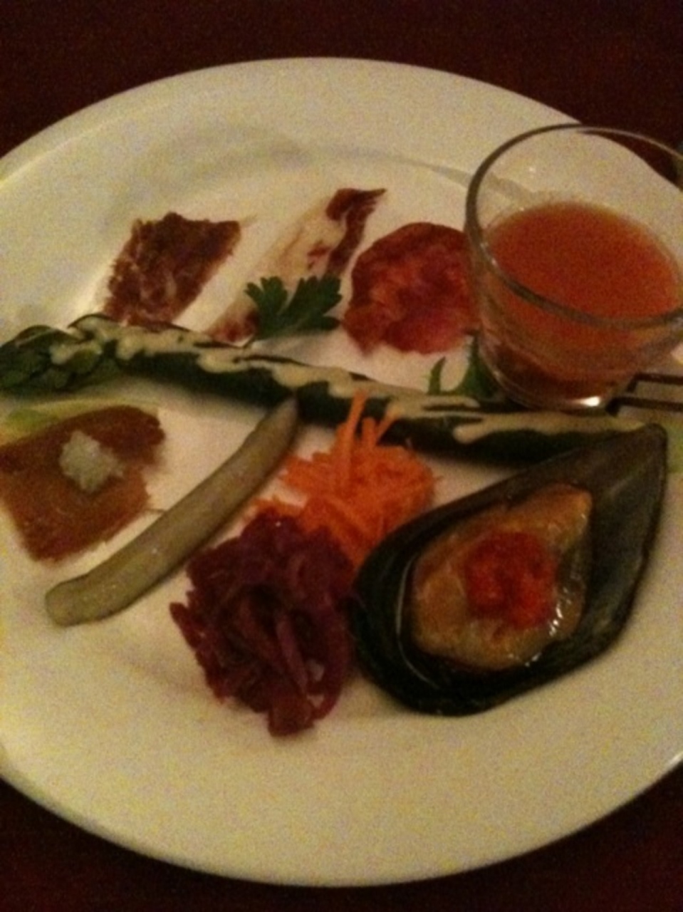 雑誌でみて気になっていたこのお店、パエリアが目当てで、コース料理を食べに伺いました。