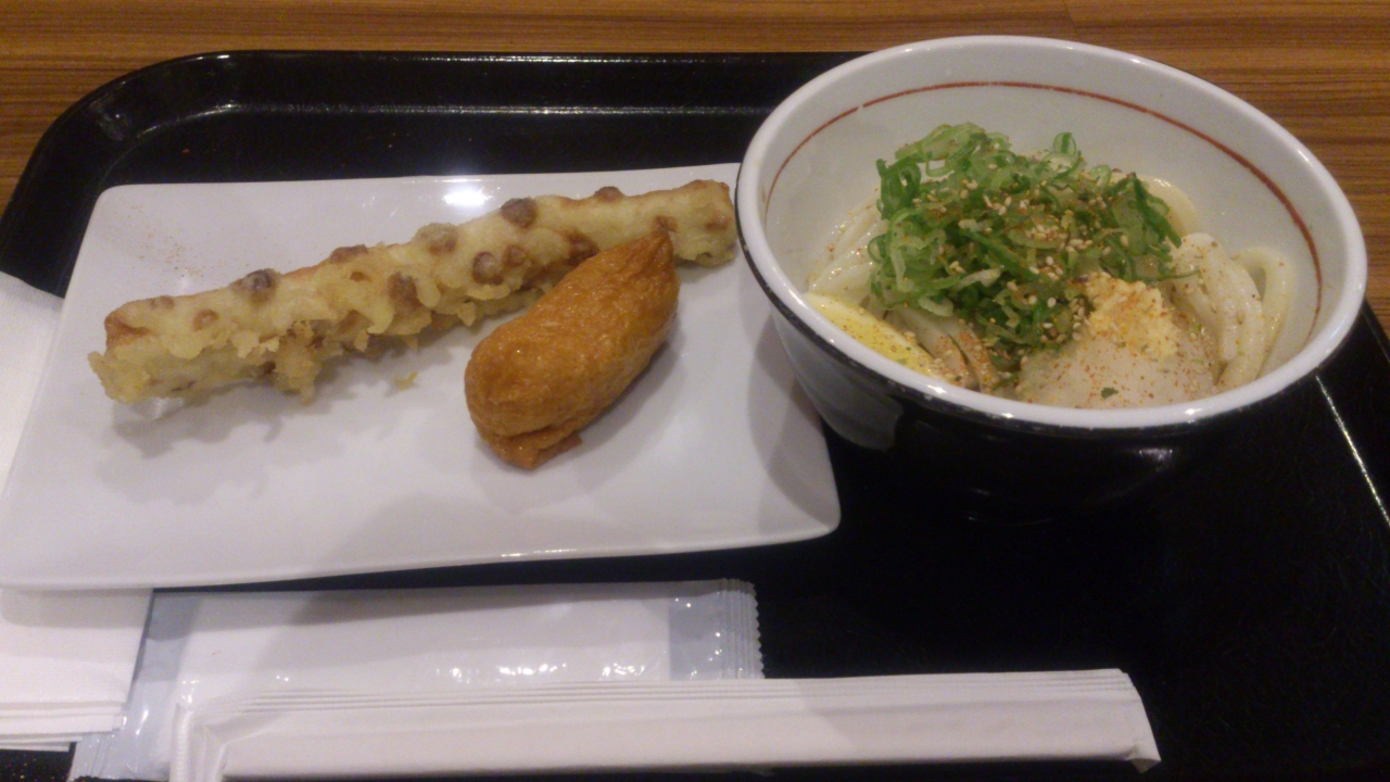 今回は生醤油ぶっかけ、おいなりさん1個、ちくわのてんぷらで680円でした。