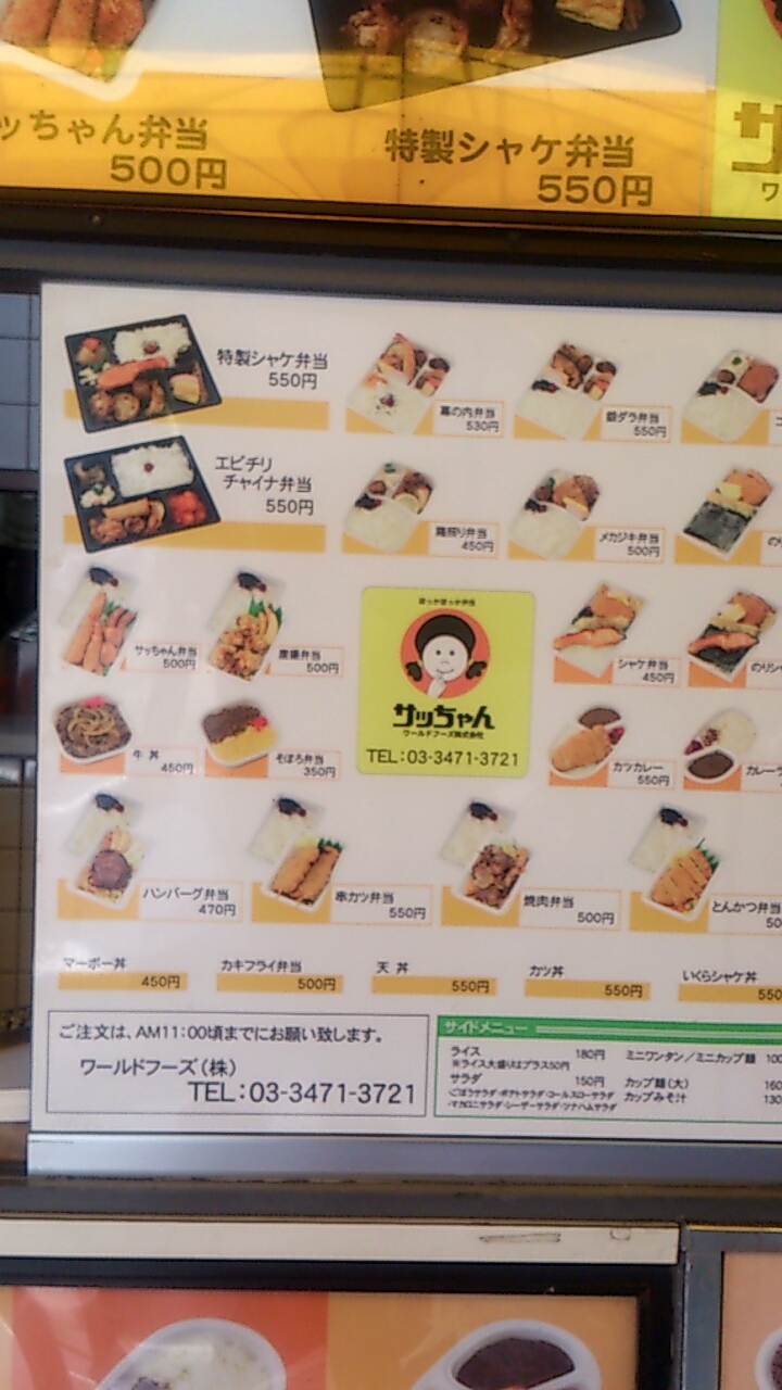 ここサッちゃん弁当は二郎の横にありいつもサラリーマンでにぎわっています。