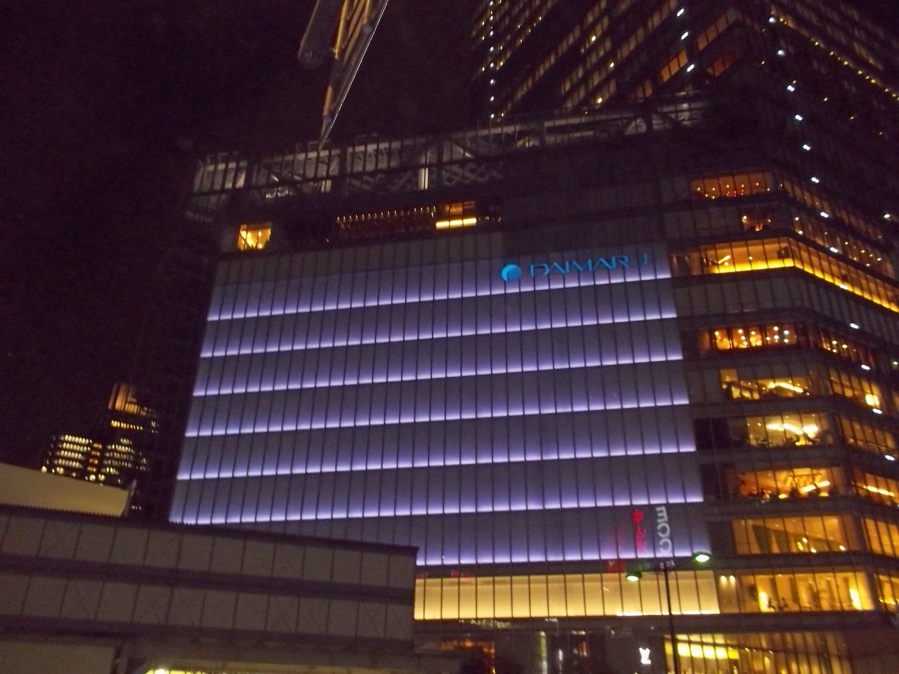 綺麗に映し出された大丸東京駅店。普段見上げないが、夜は様々な色のライトに照らされてあまりの美しさにシャッターを切った。これらの風景も捨てたものでないと改めて気づいた次第。食事をした後、最終に近い「新幹線」に乗るために急ぐ中での撮影でした。
