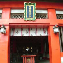 石段中段の左手木立の中に小社が並んでいます。全て手を合わせさらに上へ、広い境内には立派な社殿拝殿があります。明治時代に建てられたとあります。隣脇には赤い鳥居・初辰稲荷神社がありました。