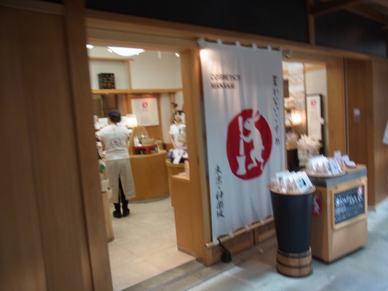 店員さんは月でウサギが餅をついているデザインのシャツを皆着ていて、店内は木の雰囲気の中、白が多い化粧品が非常に映えていました。