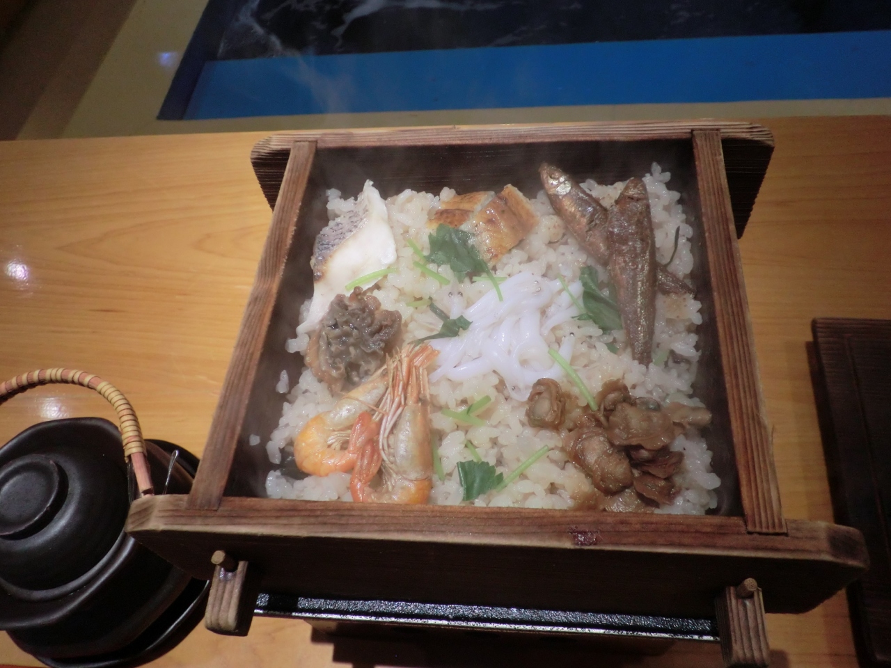 楽しみにしていた「活イカ」と東京ではあまり食べれない「のどくろの煮つけ」に「宍道湖七珍物語」というちらし寿司風の蒸しご飯と「つくね」をオーダー。
