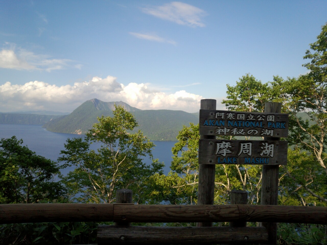 北海道観光の定番スポット。霧の摩周湖と言われるくらい、霧が晴れない摩周湖で、めずらしく霧が晴れていました。湖の中に二つの小島があり、二つともつしっかり見えるのは非常に珍しいようです。