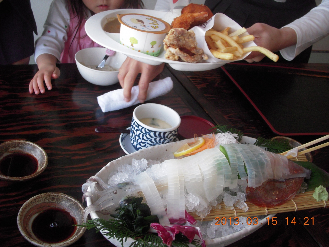 福岡市内ですが、西区の端、糸島半島内にお店があります。市内から車で30分ぐらいで着きます。お店の裏はすぐ浜辺になっています。1Fはかき小屋風のバーベキュースペース。2Fが座敷とテーブル、カウンター席になります。カウンター席は、正面に海を見ながら食事ができます。平日の2時頃に行ったので、空いていました。座敷で海を横に見ながらいかの刺身、鯛茶漬けセットを注文しました。いかは甘みがあって期待を裏切らないおいしさ。鯛茶漬けもダシが効いていておいしかったです。浜辺には、ブランコや滑車があって子供は楽しめます。食後に一通り遊んで帰宅しました。