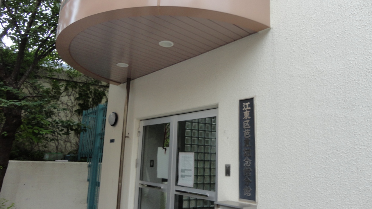 芭蕉稲荷神社をさらに進み、正木稲荷神社のまた先に歩いていくと、突き当りに芭蕉記念館分館があります。分館の上に上がっていくと、芭蕉庵史跡展望園があり、芭蕉の像が、小名木川と隅田川の合流地点、その先の清須橋の方向を向いて建てられています。