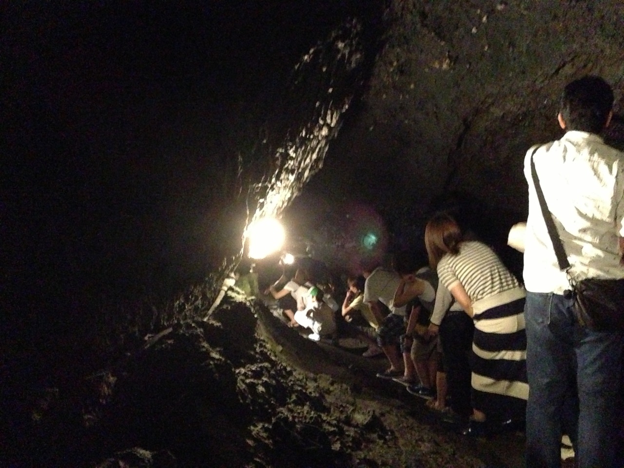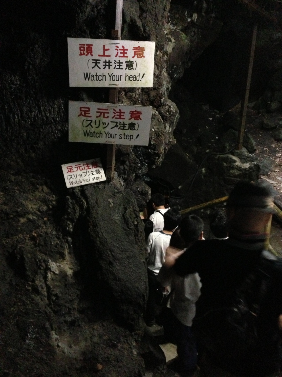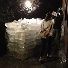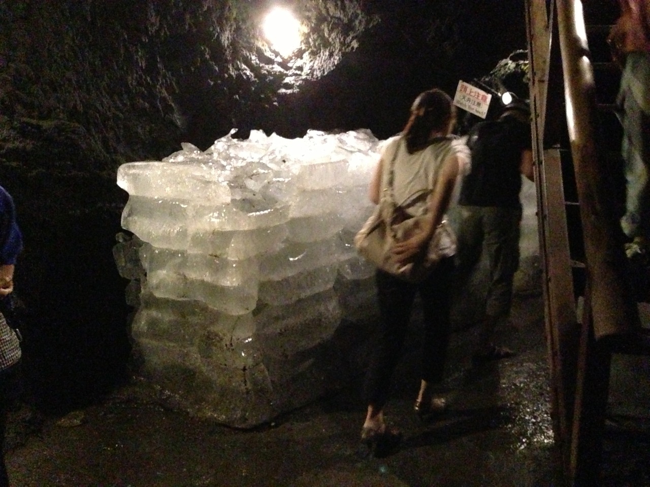 氷穴という場所があるんですね。富士五湖に来て初めて知りました。7月の3連休、駐車場に入るのに長蛇の列。入場料280円を払い、お客さんの列はディズニーランドさながらです。氷穴に入るまで30分ほど並びました。階段を下りると、一気に空気が変わるので驚きます。大地の不思議を感じます。天井の低い通路を、かがんだ状態で通り、奥まで進むと氷の壁が現れました。天然の冷凍庫です。涼しいを通り越して、寒い。私は長袖着用でしたが、半袖の方は本当に寒そうにされていました。氷穴までは石の階段や滑りやすそうな坂道を下ることになるので、ヒール靴では危険です。また、水たまりがあるので、サンダルだと足が濡れて気持ち悪い思いをします。