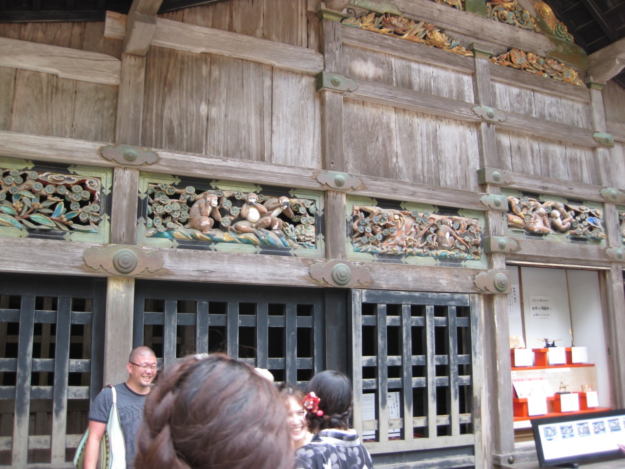 かの有名な馬屋に彫られた猿の彫刻は、見逃してしまいそうな場所にあります。