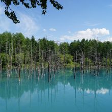 どうやら水の成分が関係してこのように青く見えるらしいのですが