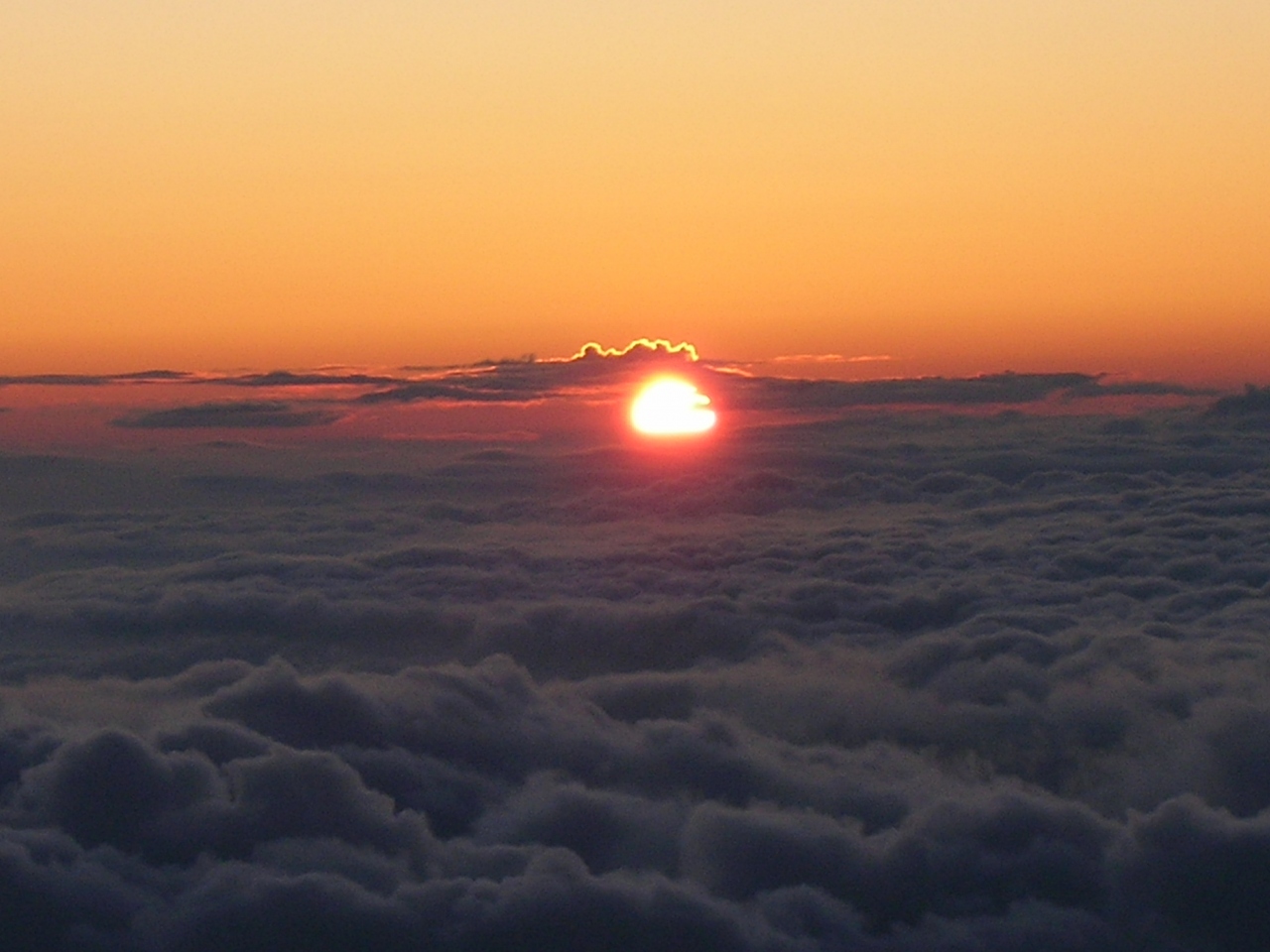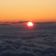 夜8時に須走口から入山。ご来光までには登頂できませんでしたが、山の斜面に座って、ひんやりとした空気の中でご来光を待つのはとても素晴らしい時間でした。徐々に明るさが増していく雲海から太陽が顔を出した瞬間は、感動で涙が出そうでした。とても高いところにいると感じました。太陽が昇るとどんどん暑くなりました。