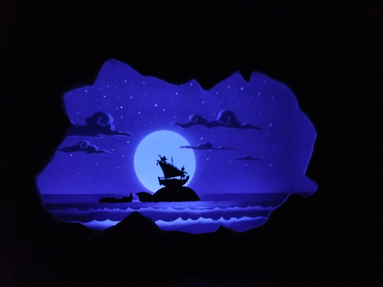 水曜日の午前中、パーク内を移動中に足が疲れたので休憩のつもりで寄りました。待ち時間ゼロで、ボートは貸切でした。混んでいる日だと、ボートは満席ですし、乗っているボートから前のボートやその前を走るボートが連なっているのが丸見えですが、今回はそれもなく、ゆったりのんびりストーリーを楽しむことができました。