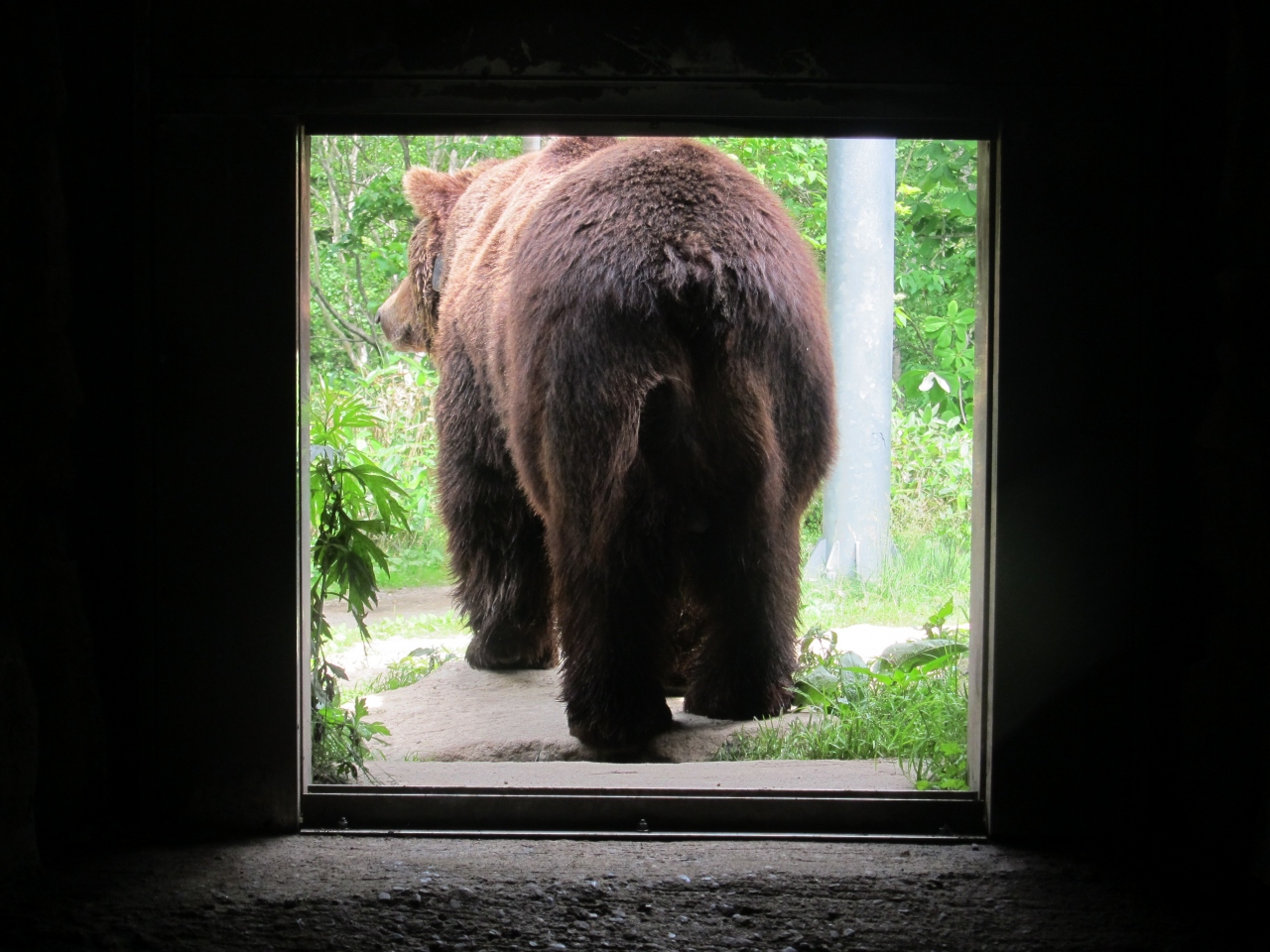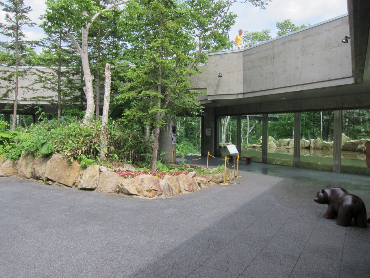 ベアマウンテンはサホロリゾート内の1施設です。所謂熊牧場とは展示方法が違い熊が施設内で放し飼いにされ、その中をバスや中空通路から見学することができます。行った日は平日だったためかバスは貸切状態、また暑い日だったため熊は木陰に隠れ気味でバスからは見られましたが、中空通路からは見られませんでした。
