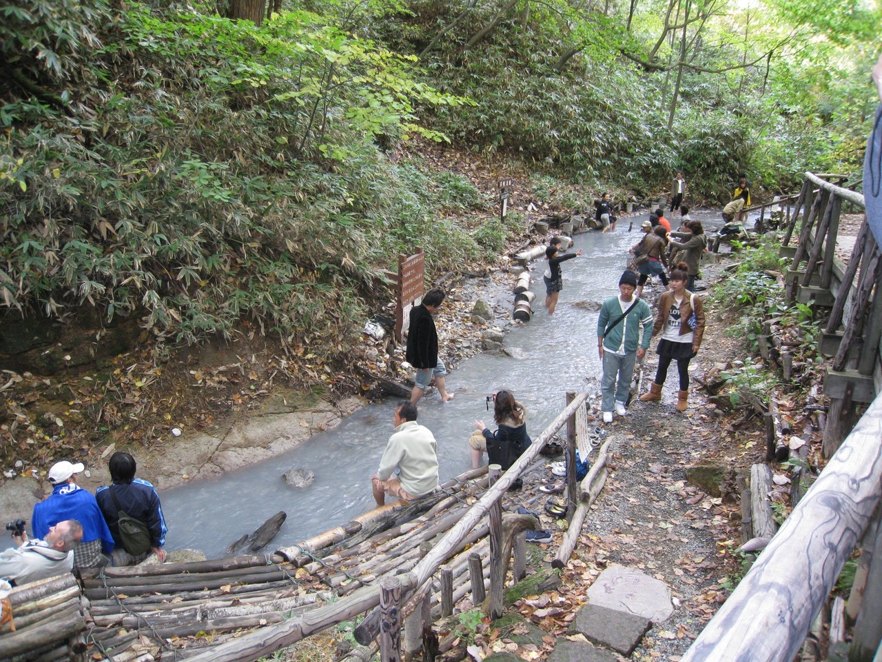 - 自然いっぱいの中での天然足湯。