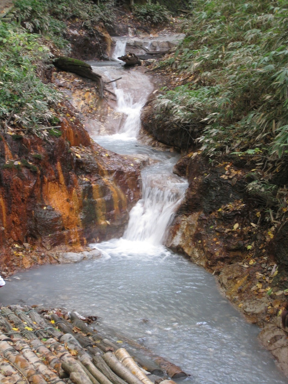 天然の乳白色の足湯。