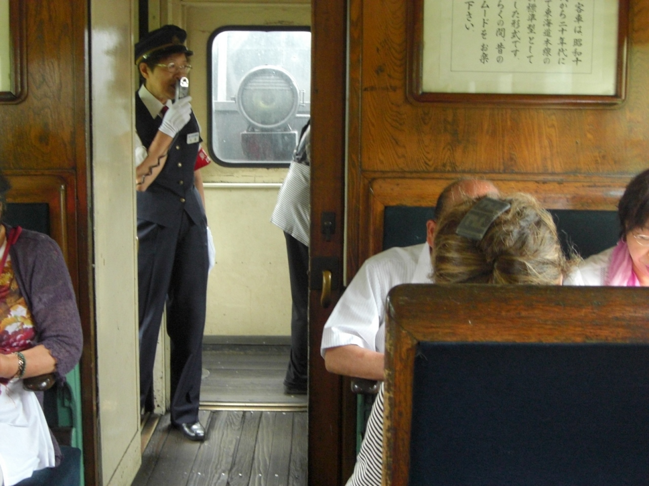 煙がモクモクで、服が汚れるとか、煙いとか敬遠されていたものですが、今はなつかしい蒸気機関車に老若男女が喜んで乗っていました。駅前に案内所、休憩所と売店があり、昔使われていた電車や備品が置いてありちょっとした博物館になっていました。車内では、ここでしか買えない限定品を売りにきます。