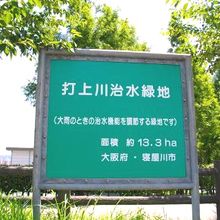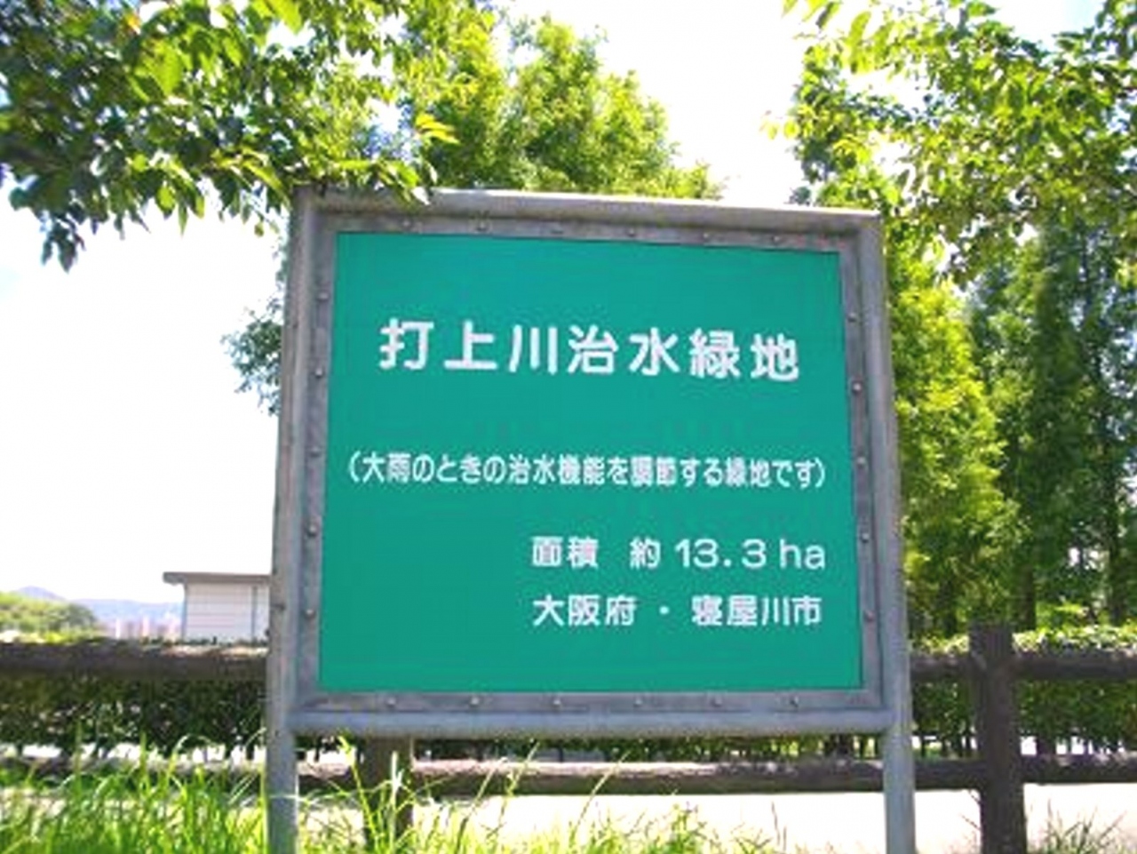 打上川治水緑地は、洪水のときに寝屋川と打上川の両河川の流量を調整するために、大阪府がつくった施設です。緑地内は、上池と下池をせせらぎで結び大変水が豊かたです。