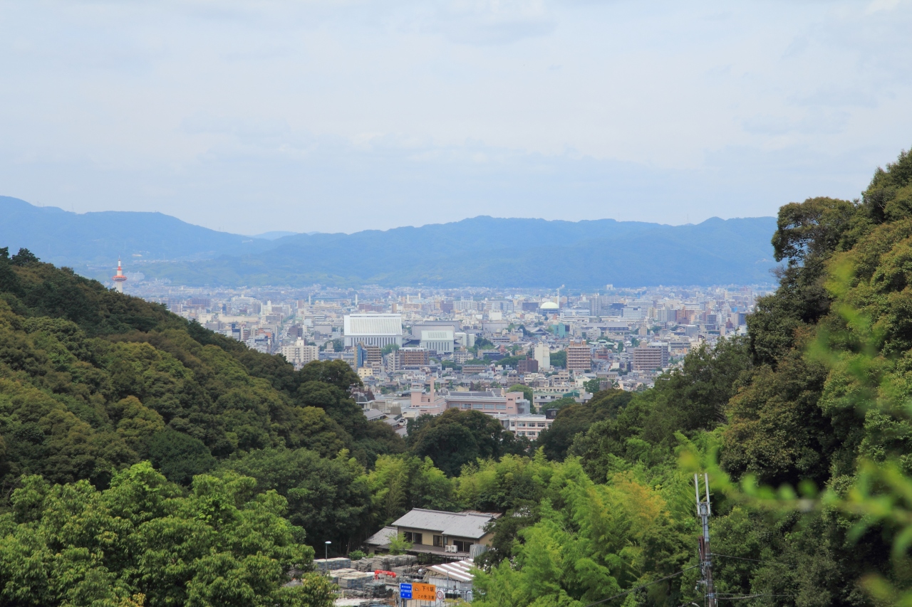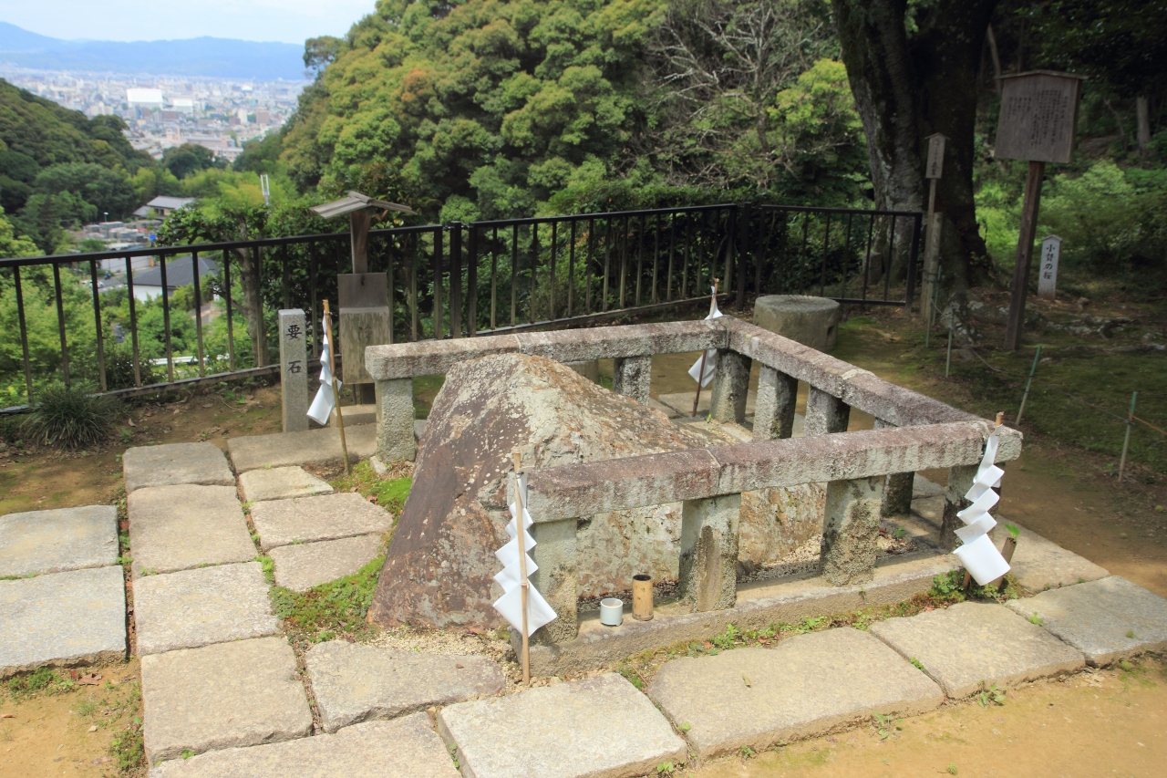 この石の前に立てば京都の街があたかも扇を開いたかのような角度で眺望でき,ちょうど石のある位置が扇の「要」にあたることから「要石」と呼ばれます。