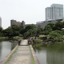 旧芝離宮恩賜庭園はそれほど広い敷地ではありませんが、中心にある池を中心に調和のとれた景色が広がっています。中国にある風光明媚な湖、西湖の堤を模して造られた石橋の架かる風景は、箱庭的な美しさを感じさせられます。