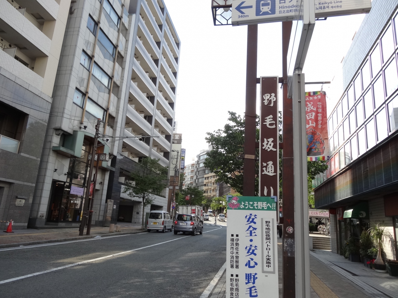 大岡川に架かる橋あたりから、野毛の坂の手前の交差点あたりまで